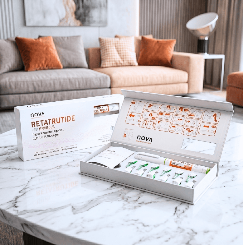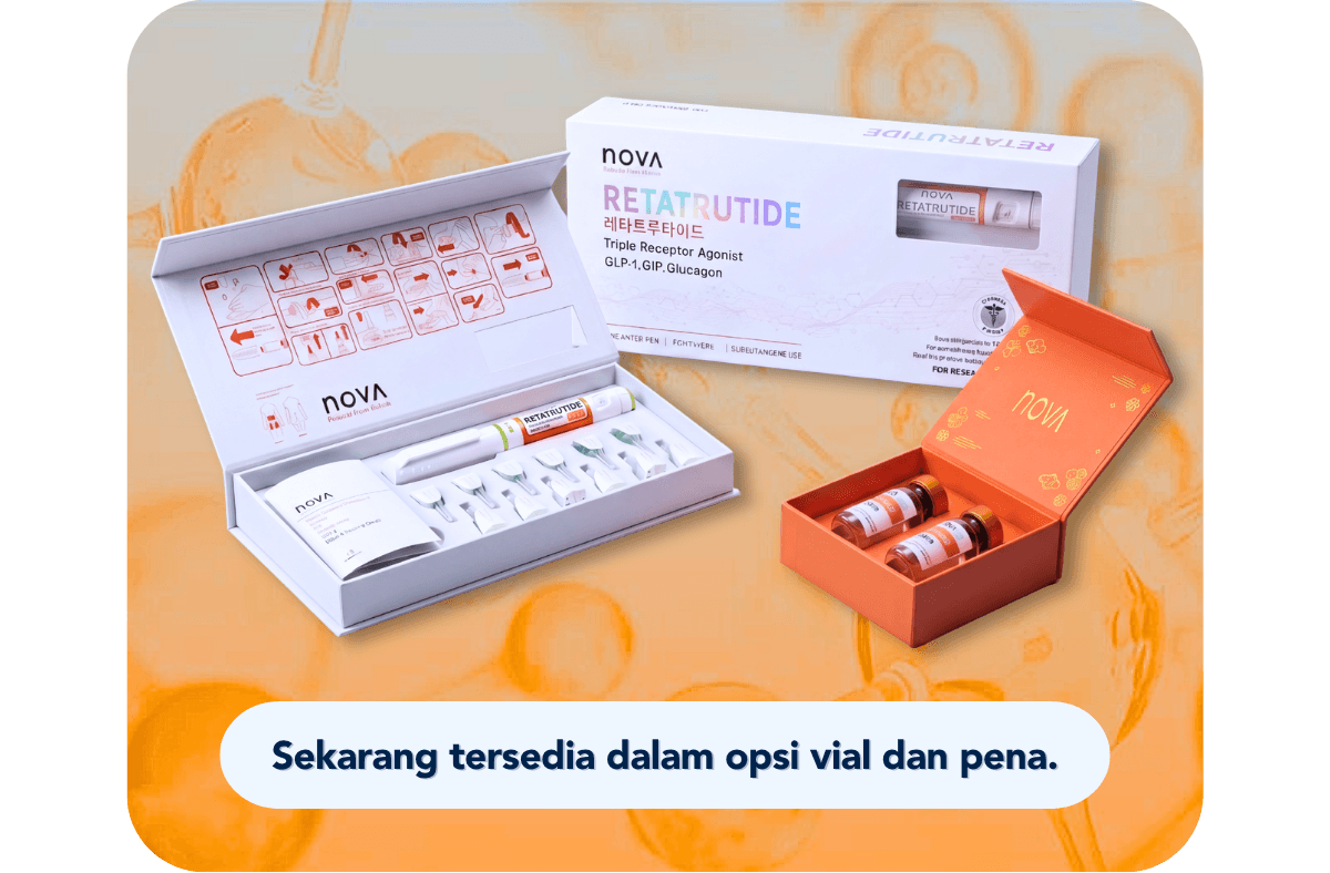 Peptida yang disuplai oleh NOVA dipelajari di lingkungan penelitian yang berfokus pada komposisi tubuh, metabolisme lemak, dan regulasi energi. Bahan visual yang ditampilkan mewakili area fokus penelitian dan tidak menyiratkan hasil pribadi.